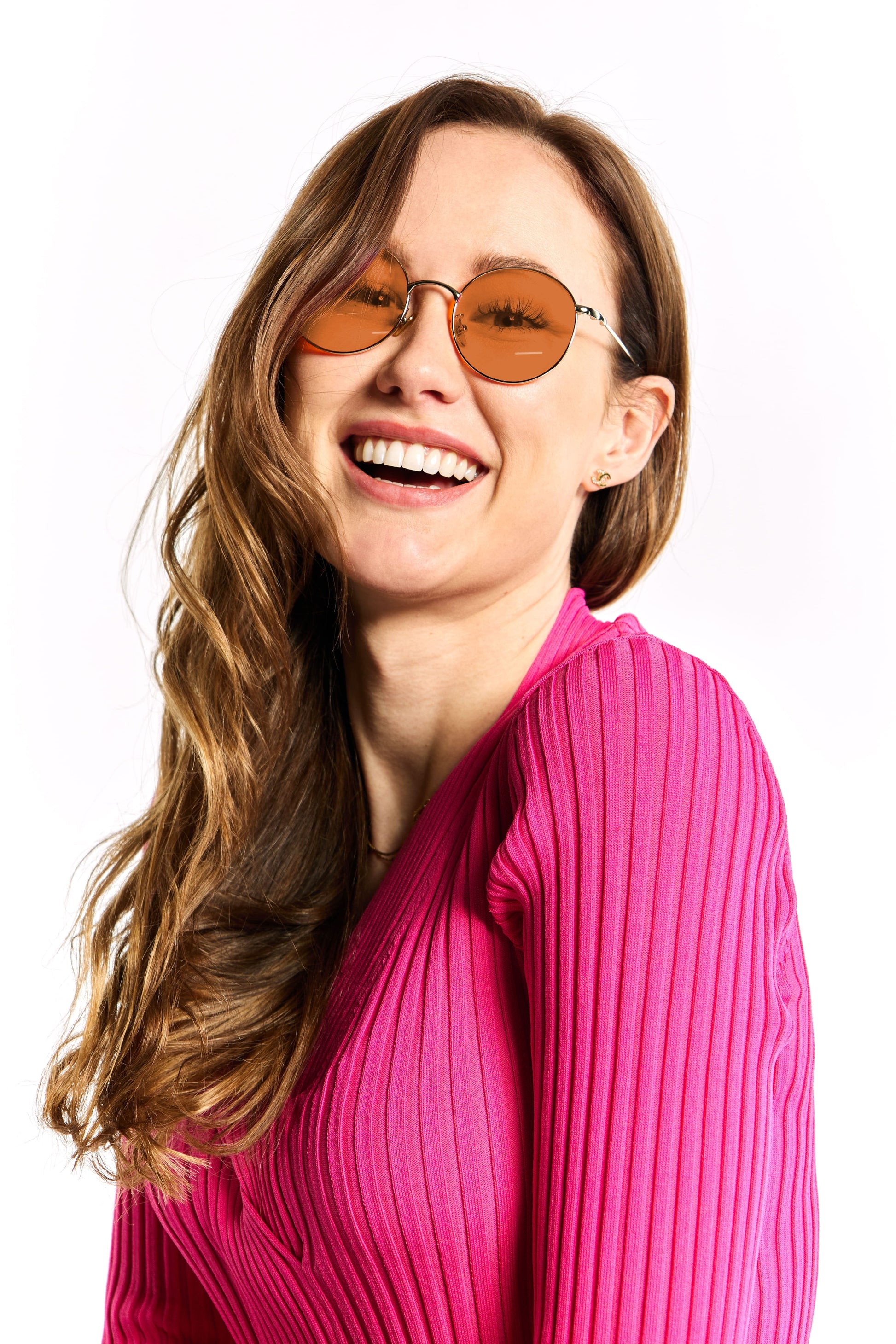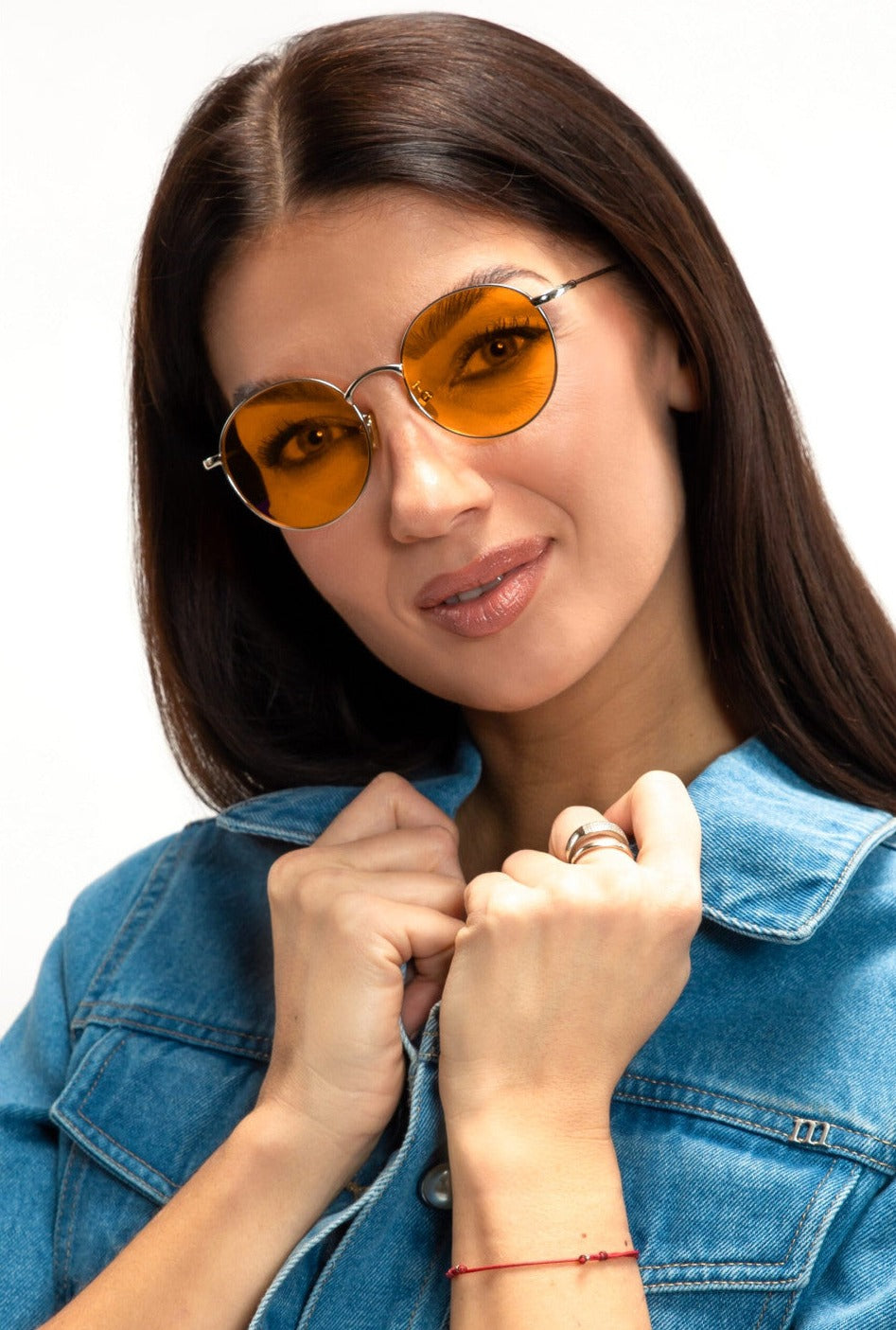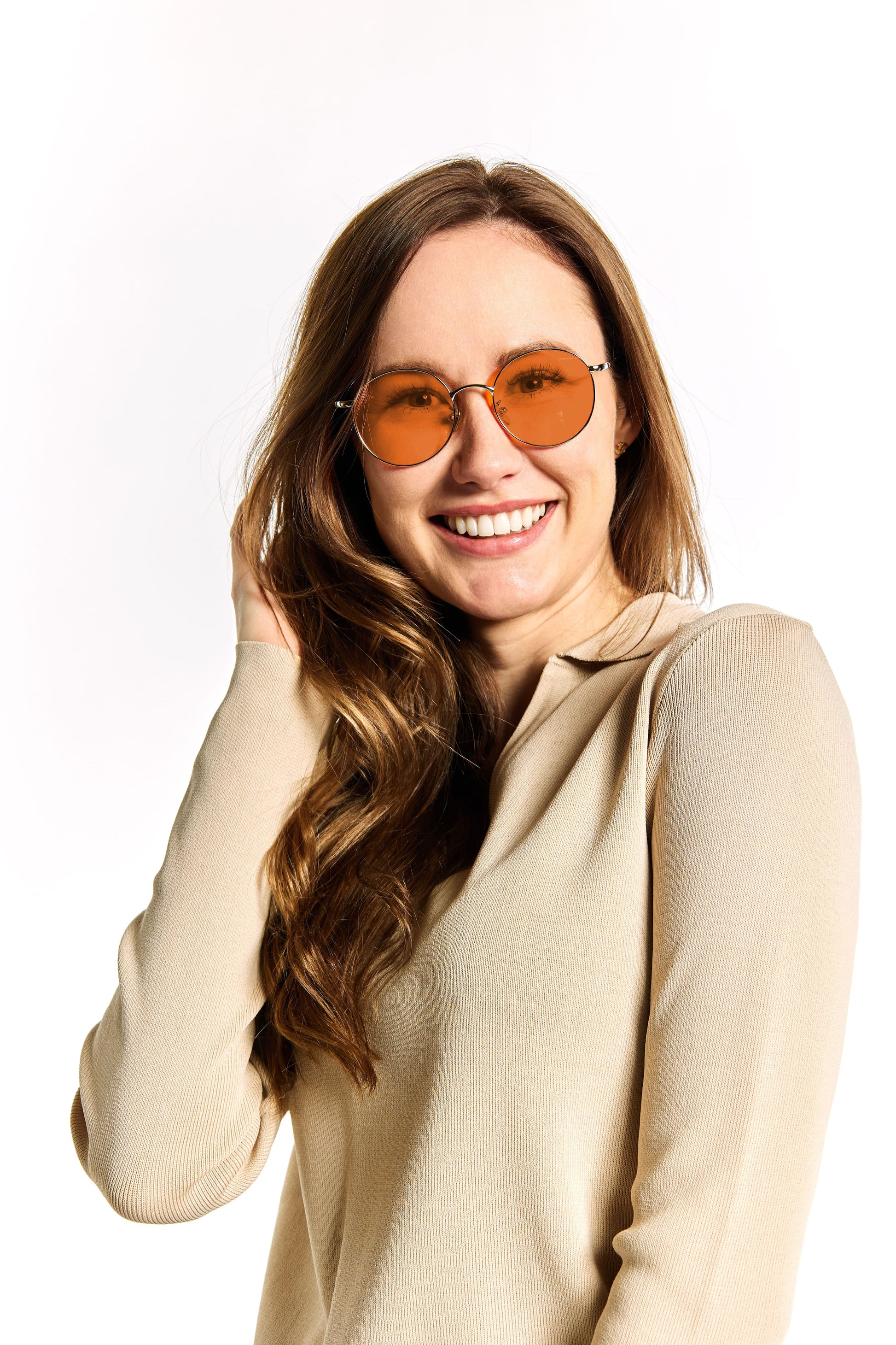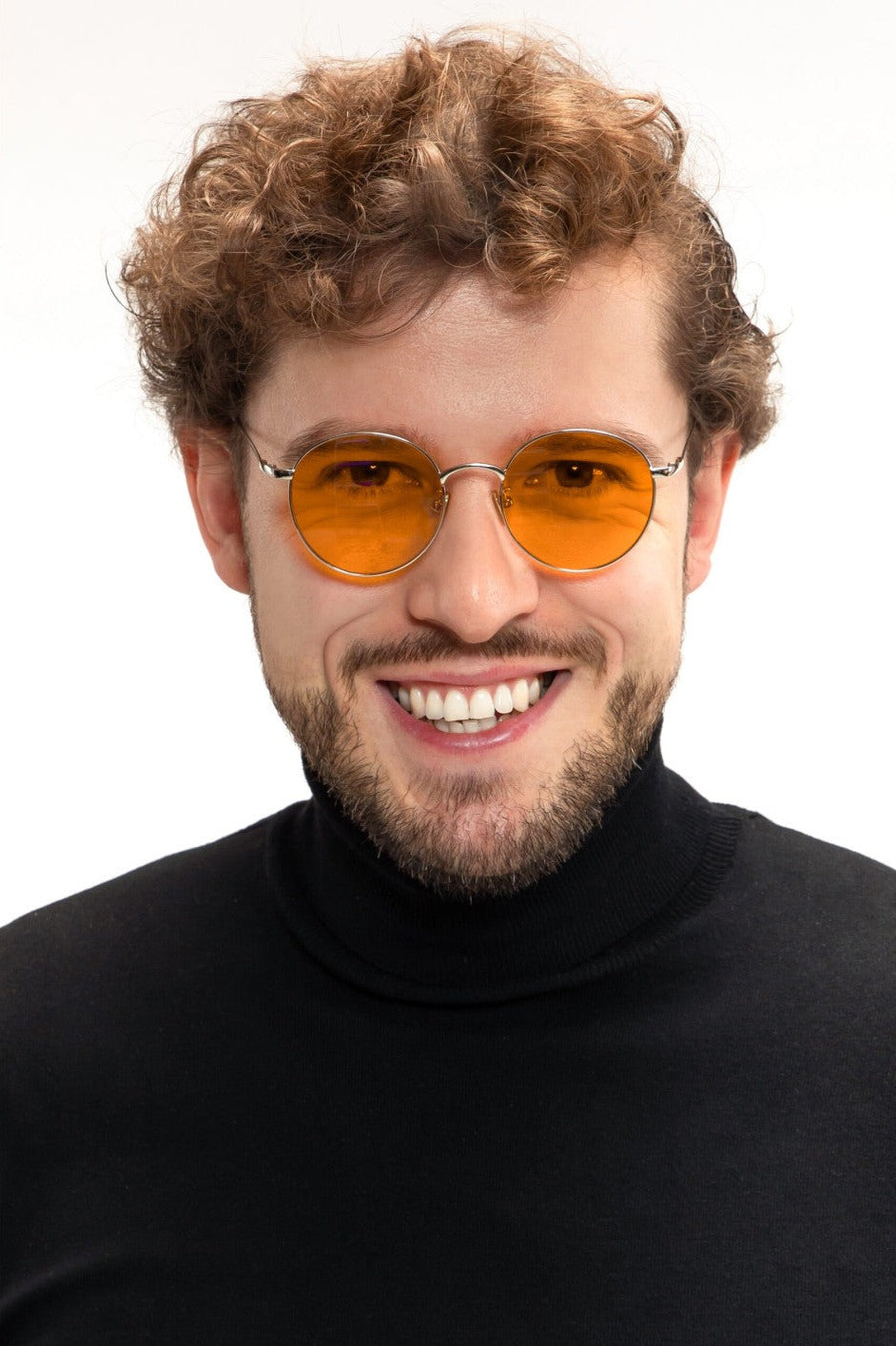 - Gemerkte NoBlue-bril "Chrome Orange" met 99% filtratie van blauw licht