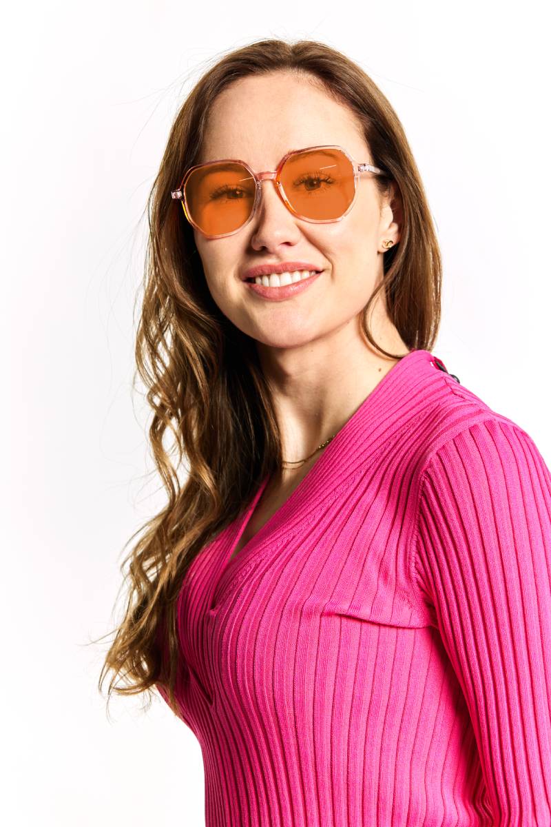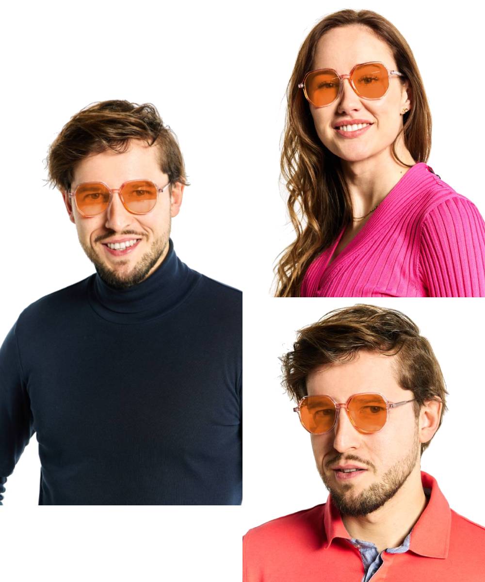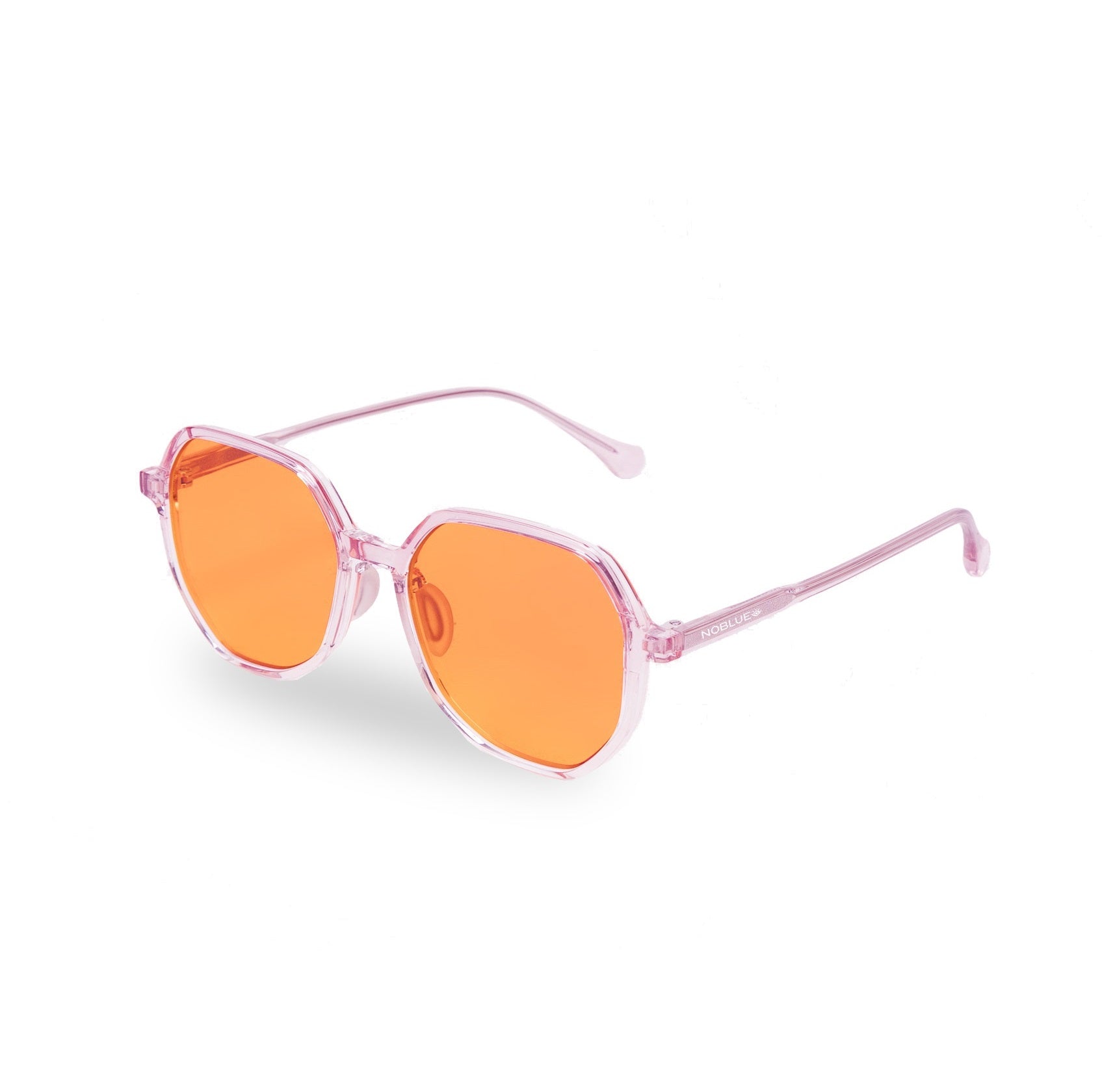 - Gemerkte NoBlue-bril "Hexagon Orange" met 99% filtratie van blauw licht