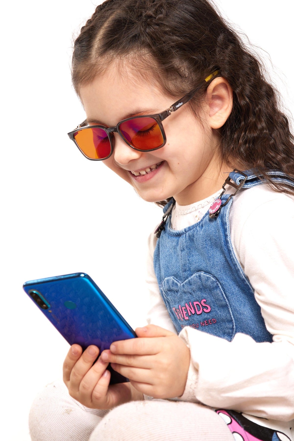 - Gemerkte NoBlue-bril "Junior Orange" met 99% filtratie van blauw licht