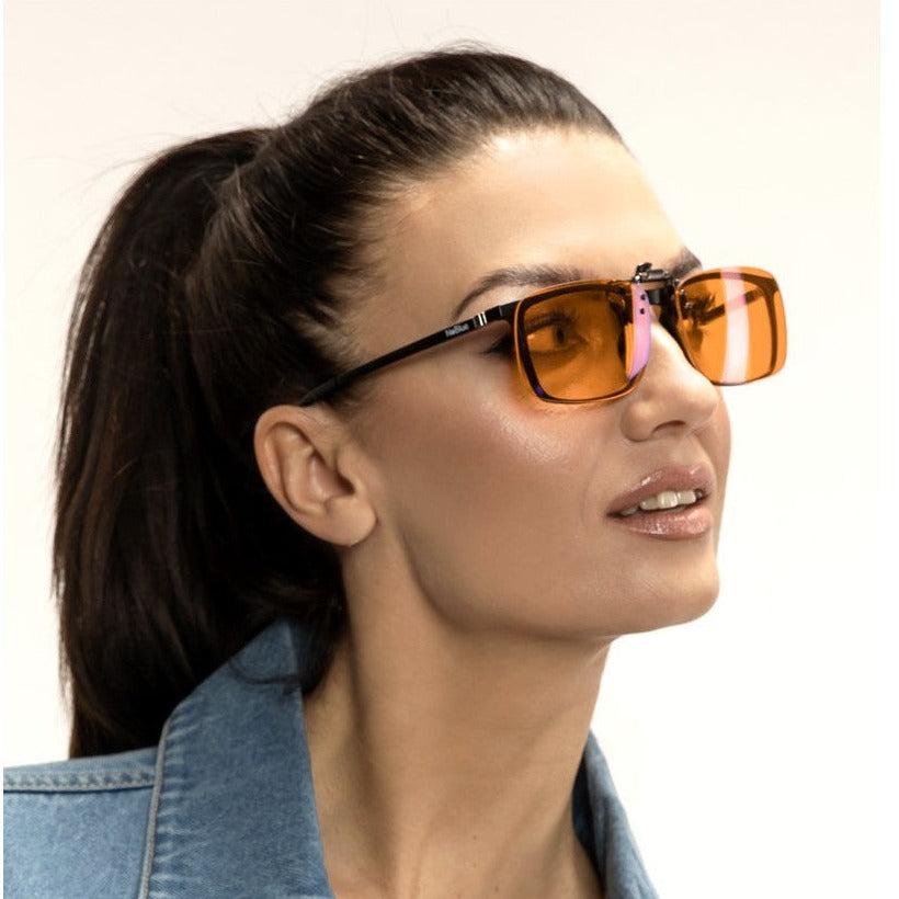 - Gemerkte NoBlue-bril "Opzetbrillen Orange" met 99% filtratie van blauw licht